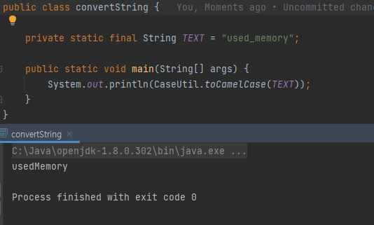 UnderScore -> CamelCase 형태로 만들고자 아래처럼 코드를 작성했다.