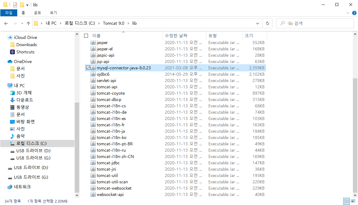 5. 해당 jar파일을 톰캣경로\lib로 복사함 (만약, 톰캣이 실행중이라면 톰캣 재시작 )
